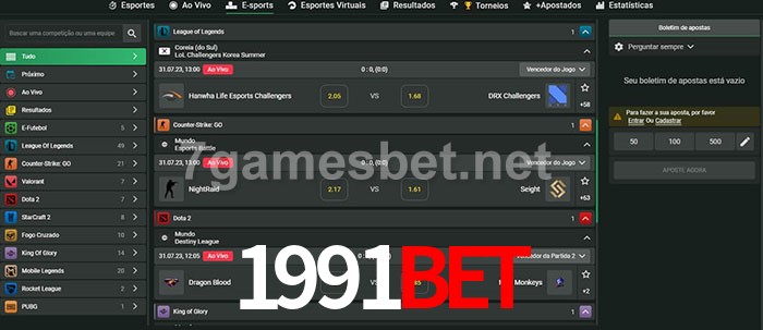 O 1991Bet oferece uma grande seleção de opções de apostas em e-sports com probabilidades competitivas